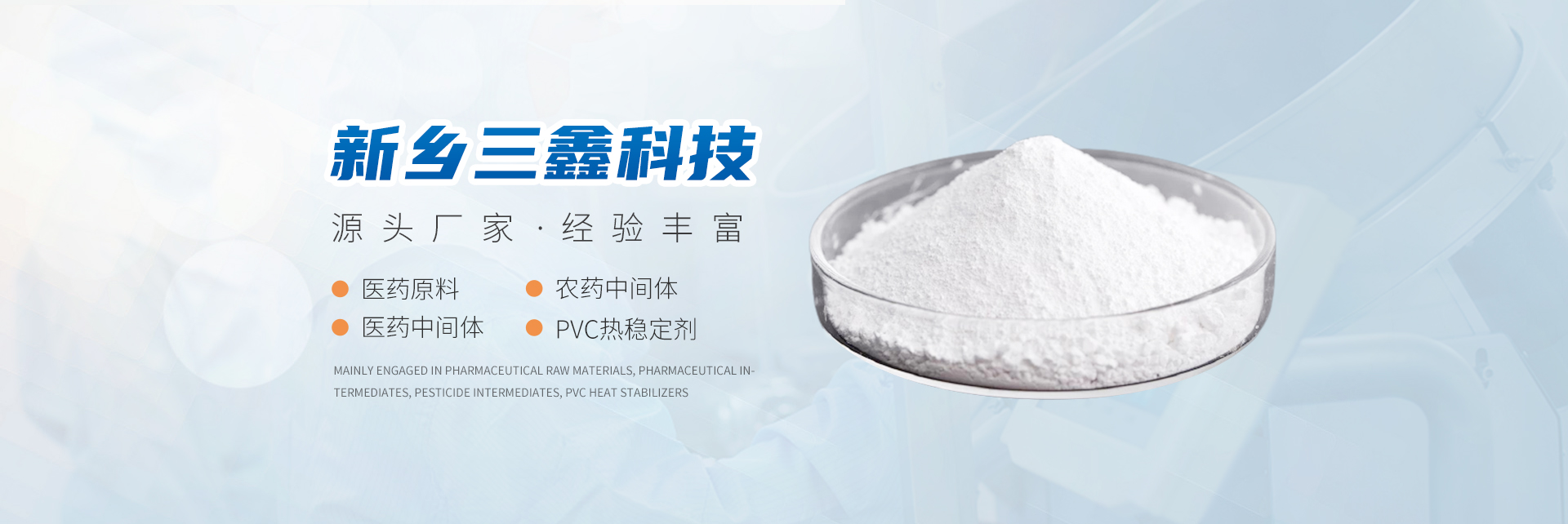 新鄉市三鑫科技有限公司主要從事醫藥原料、醫藥中間體、農藥中間體、PVC熱穩(wěn)定劑、精細化學品和有機中間體。